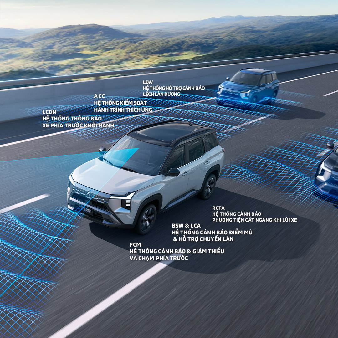 Hệ thống an toàn chủ động thông minh đa chức năng, hỗ trợ tay lái trên mọi hành trình.